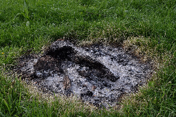 Remnants of a campfire: charred embers and a blackened circle on the ground. It's unsightly and harmful to the environment - especially when many people have the same idea.