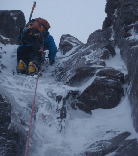 While a Grade II climb may contain some minor pitches, Grade III gullies will contain ice in quantity, with at least one substantial pitch and possibly several lesser ones. On buttress climbs at this grade you may find them more sustained, although they’re likely to be technical only in short sections.