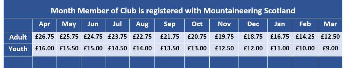 Club membership fees are paid on annual basis on a per member rate. For the year 1 April 2025-31 March 2026 these are: