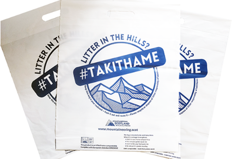 TakItHame bags are designed to be kept in your rucksack, so you have something to put your litter in every time you head to the hills, to take it home for recycling or disposal in your household waste.