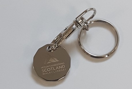 Keep all your keys in one place with our Mountaineering Scotland branded keyring and trolley token.