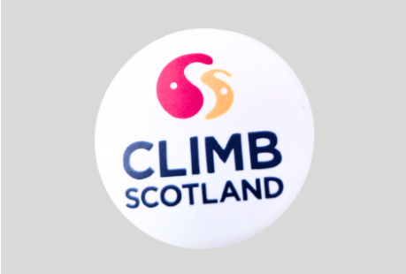 Attach this button badge to your chalk bag to show your support for ClimbScotland!