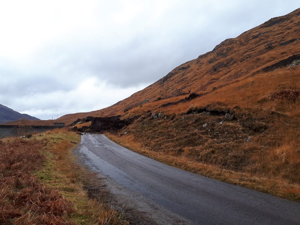 In November a landslide near Loch Quoich blocked the road to Kinloch Hourn, severing electricity supplies to a large part of Skye. The wires were soon fixed, but the road looks like remaining blocked into 2019.