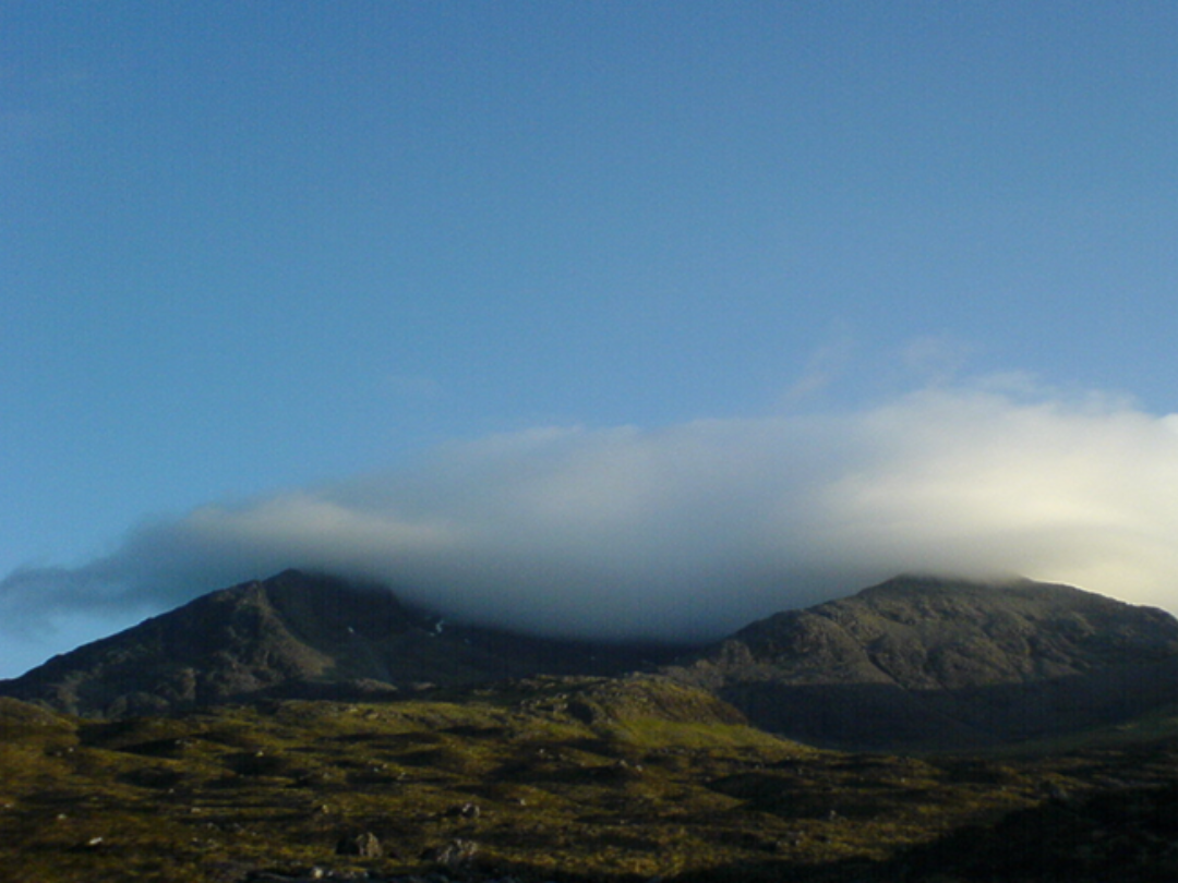 Orographic cloud forming over the Cuillin seen from Sligachan, Isle of Skye. A sunny day for most of the island but thick fog on the Cuillin ridge!
