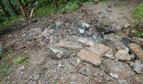 For the moment the main path has been closed off because of the debris and damage and the potential for further rockfall from above or from unstable debris falling further.