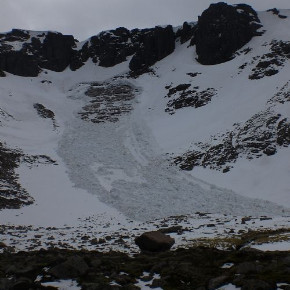 When visibility is adequate, snowpack observation can begin from the roadside. Evidence of recent avalanche activity, main snow accumulation zones, fresh loading by new snow and drifting, can often be noted from below. Observations can continue on the approach, noting such details as depth of foot penetration, cornice build-up, ease of release of small slabs and the effect which localised wind patterns may have had on slab formation. Any suspect slopes which must be negotiated (bearing in mind that the safest course is to avoid them) may be tested by digging a snowpit. If you want to find out more about this, then sign up for one of our avalanche awareness courses.