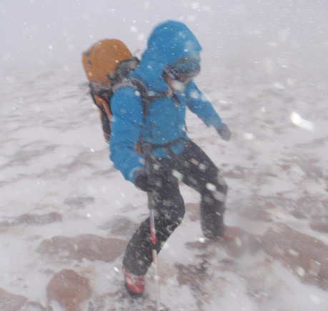 Attempting to walk in 60-70mph winds is dangerous, and there is a high risk of being blown over and suffering injury. Stay away from difficult underfoot conditions or exposed edges and get off the hill as soon as possible.