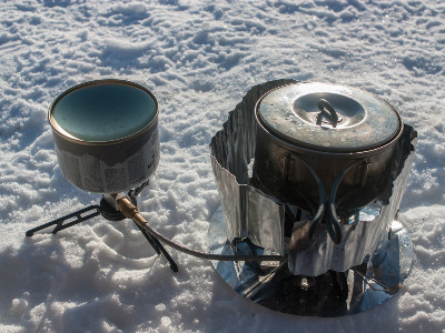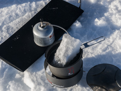 If you have a gas stove, make sure you’re using a butane/propane mix – butane alone doesn’t work well in the cold. In any case, keep the gas cylinder out of contact with snow or cold ground; it will work more efficiently.