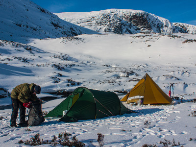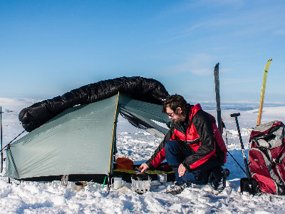 Budget tents, or tents which prioritise lightness over robustness, are best left for the summer months. For winter, a tent should be able to stand up to severe gales, and be proof against any sort of weather, including heavy, drifting snow or torrential, wind-driven rain. If you are already experienced at wild camping in the summer months you may well have an idea of the type of tent you will need; if not, then seek advice before you buy.